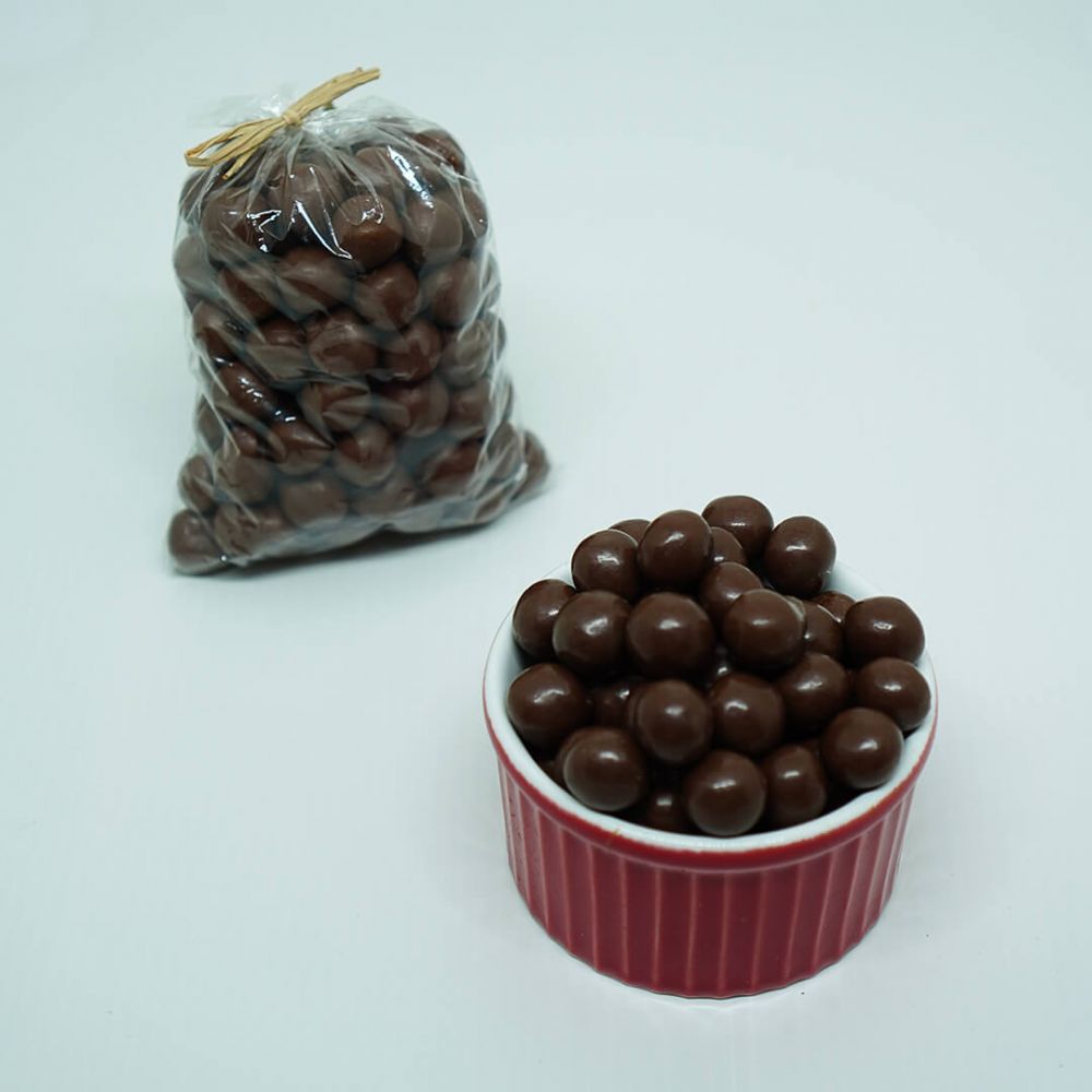 Drágeas cobertas com crocante chocolate ao leite e recheio de cereal.