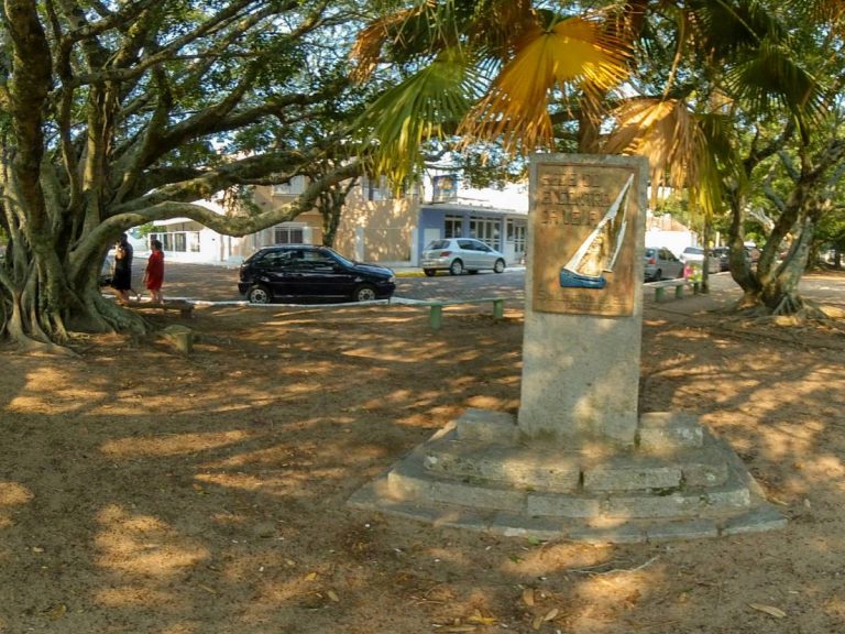 Praça que fica bem na divisa entre o início da Lagoa dos Patos com o término do arroio São Lourenço. Ponto de muitos eventos e com feira de artesanato. Localização geográfica Fotos em 360º Vídeo em 360º.